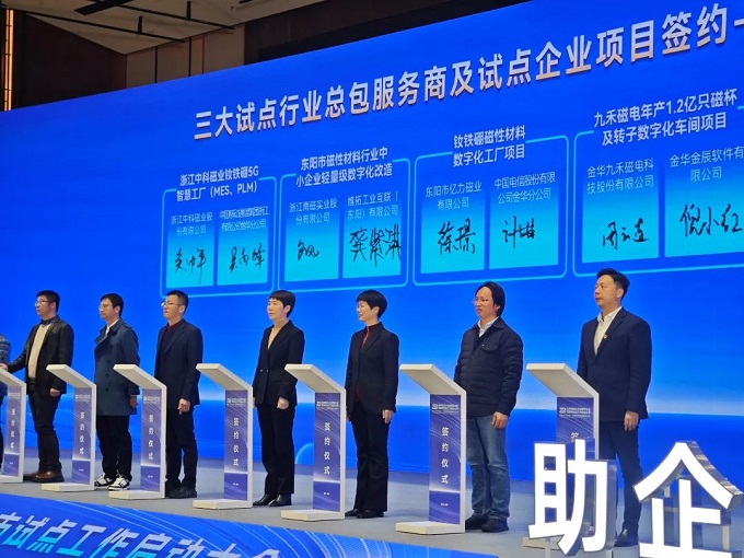 金華金辰作為此次金華市中小企業(yè)數(shù)字化轉(zhuǎn)型城市試點(diǎn)總包服務(wù)商(電動(dòng)工具、磁性材料),倪小紅女士代表參與了此次啟動(dòng)儀式。在啟動(dòng)會(huì)上與磁性材料試點(diǎn)企業(yè)——九禾磁電進(jìn)行項(xiàng)目簽約,率先開(kāi)展數(shù)字化轉(zhuǎn)型實(shí)踐。標(biāo)示著金華金辰在金華政府的支持下,將逐步探索出一條符合本地中小企業(yè)實(shí)際情況的數(shù)字化轉(zhuǎn)型特色之路,為中小企業(yè)數(shù)字化轉(zhuǎn)型提供有效金華經(jīng)驗(yàn)!