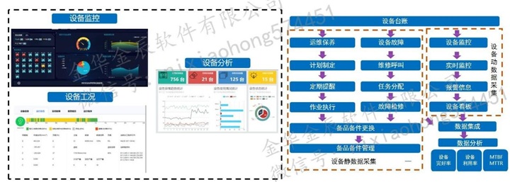 設(shè)備運(yùn)維:完成對設(shè)備運(yùn)維全生命周期的管理,包括設(shè)備臺(tái)帳、點(diǎn)檢、保養(yǎng)、維修、改造、報(bào)廢以及備品備件管理