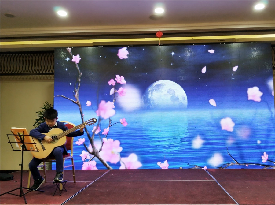 看看這位西裝革履的帥小伙,代表男神家駒給我們帶來吉他獨(dú)奏《小步舞曲》和《遠(yuǎn)足》。